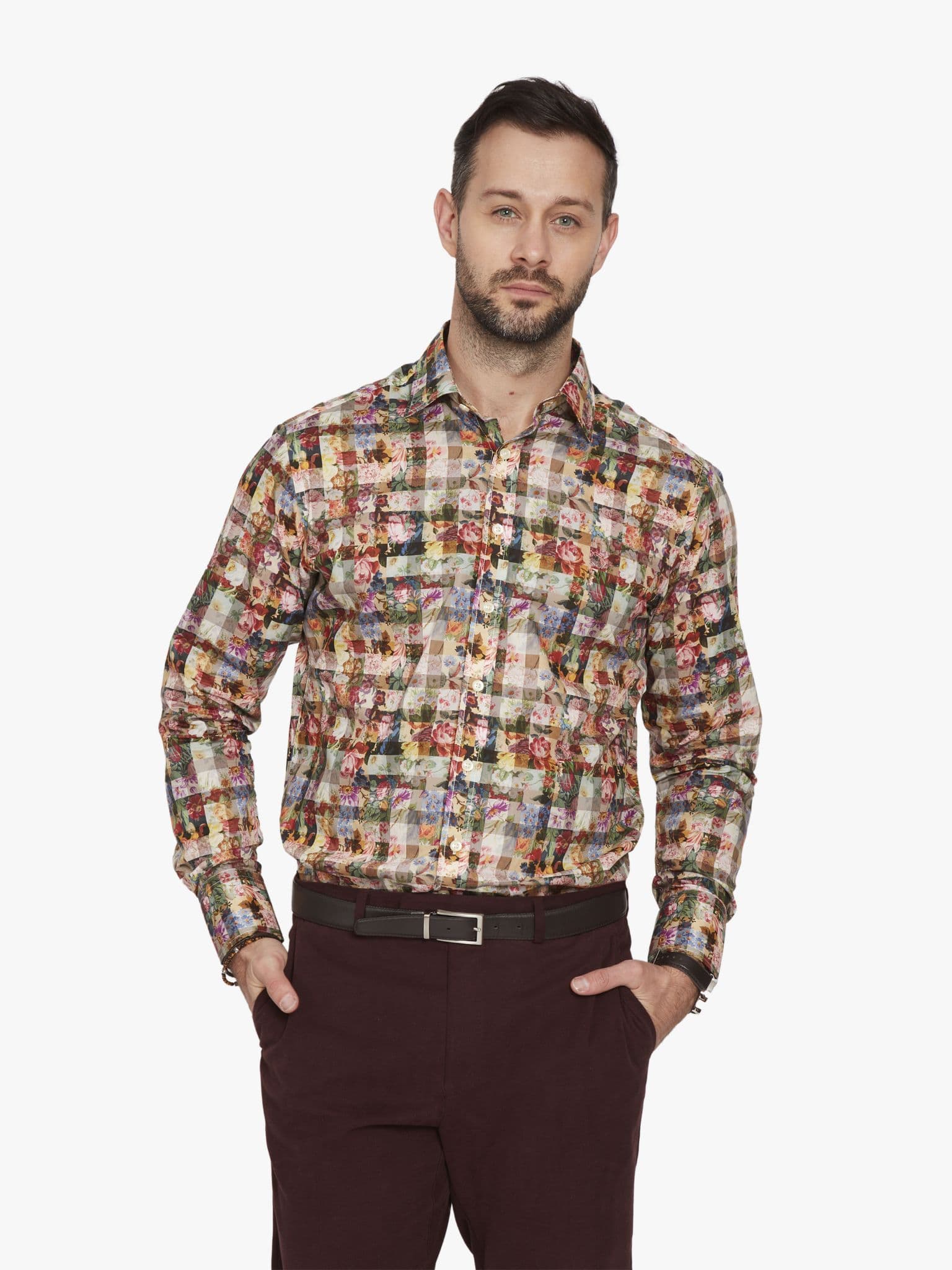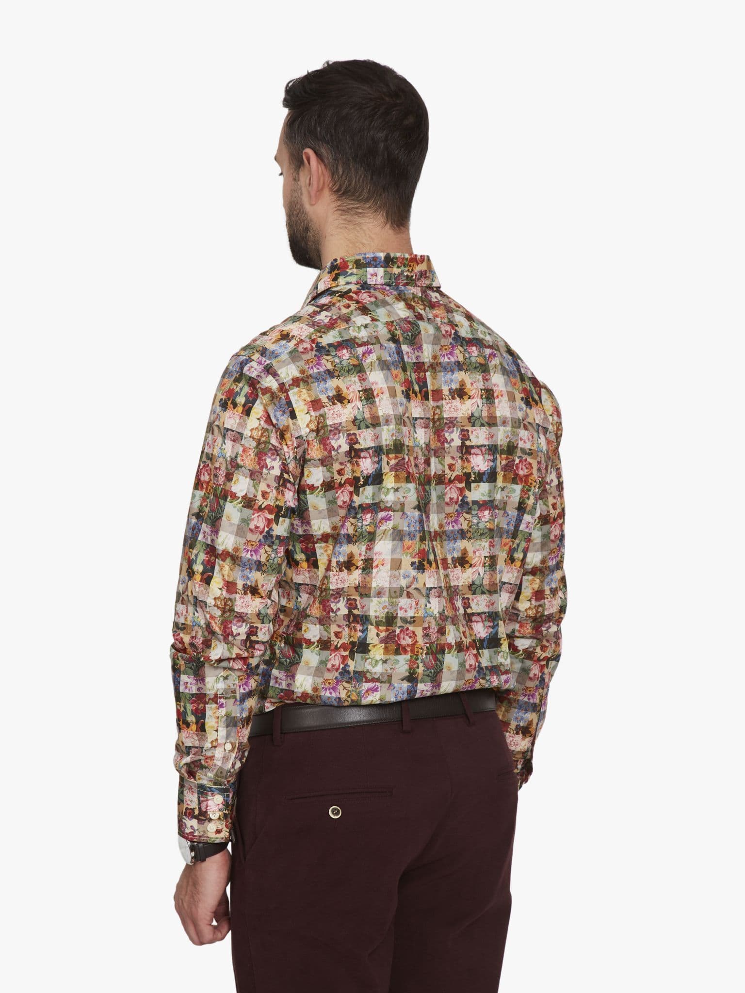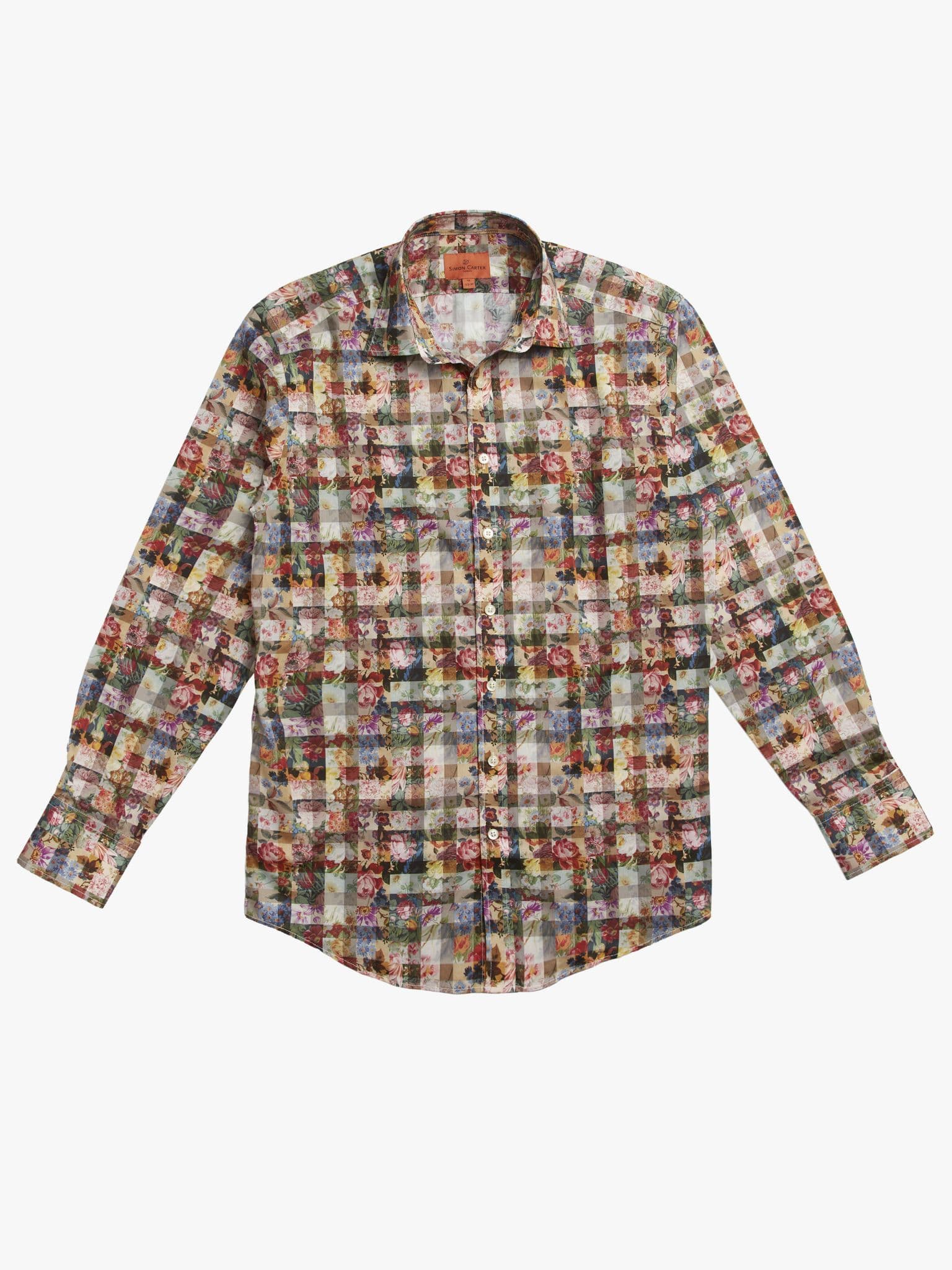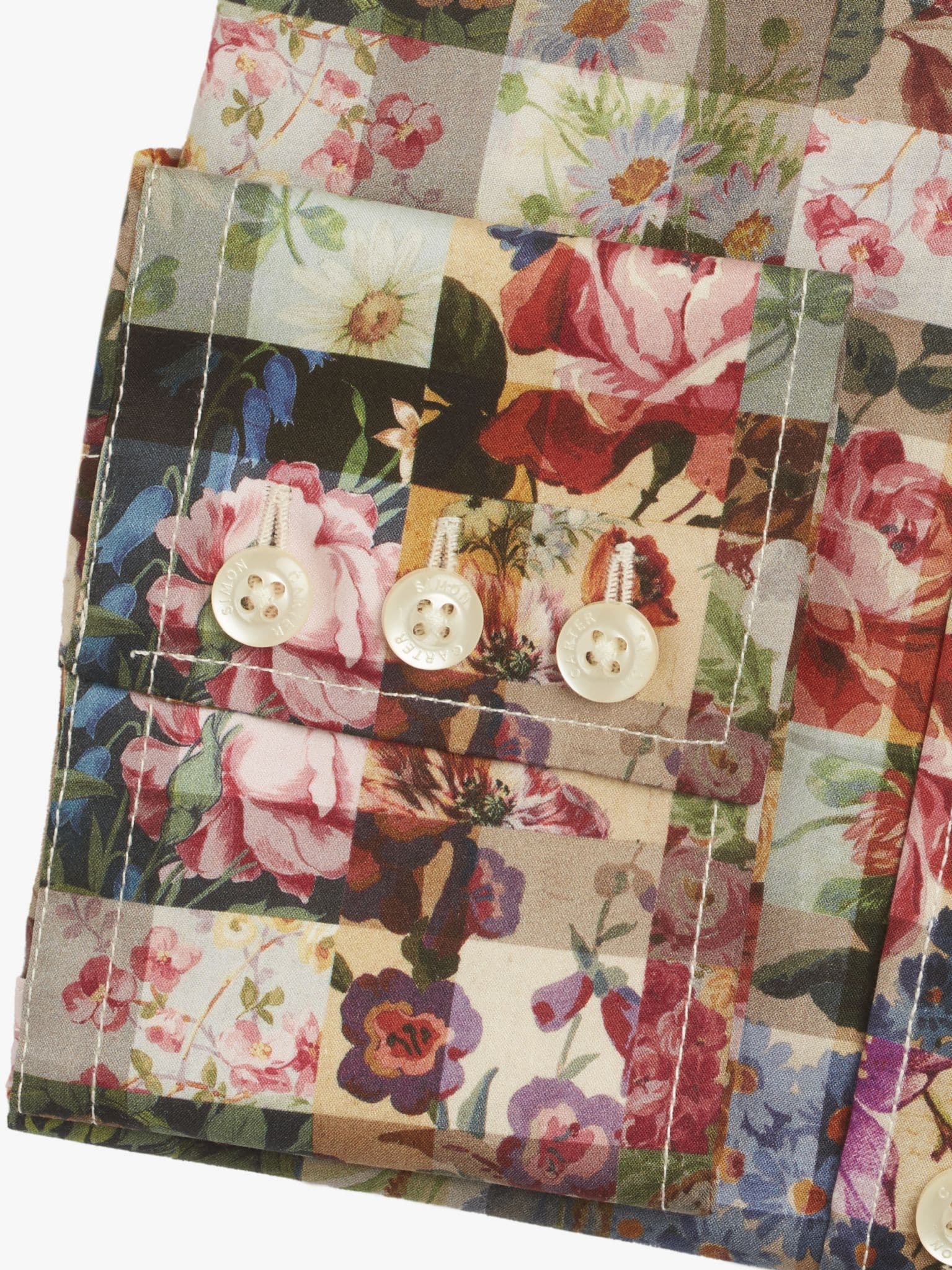 Ah, Liberty. Still surprising us after 150 years. They've raided their archives to produce a rich pattern of florals including roses, peonies, and clematis and then they've overlaid it with a transparent grid. The effect is intriguing and beautiful. Its gingham, but not as you know it.Made with Liberty fabric using their super soft 100% cotton Tana Lawn® in Portugal. Cut on our more formal block with our signature triple button cuff and a gently tailored fit.