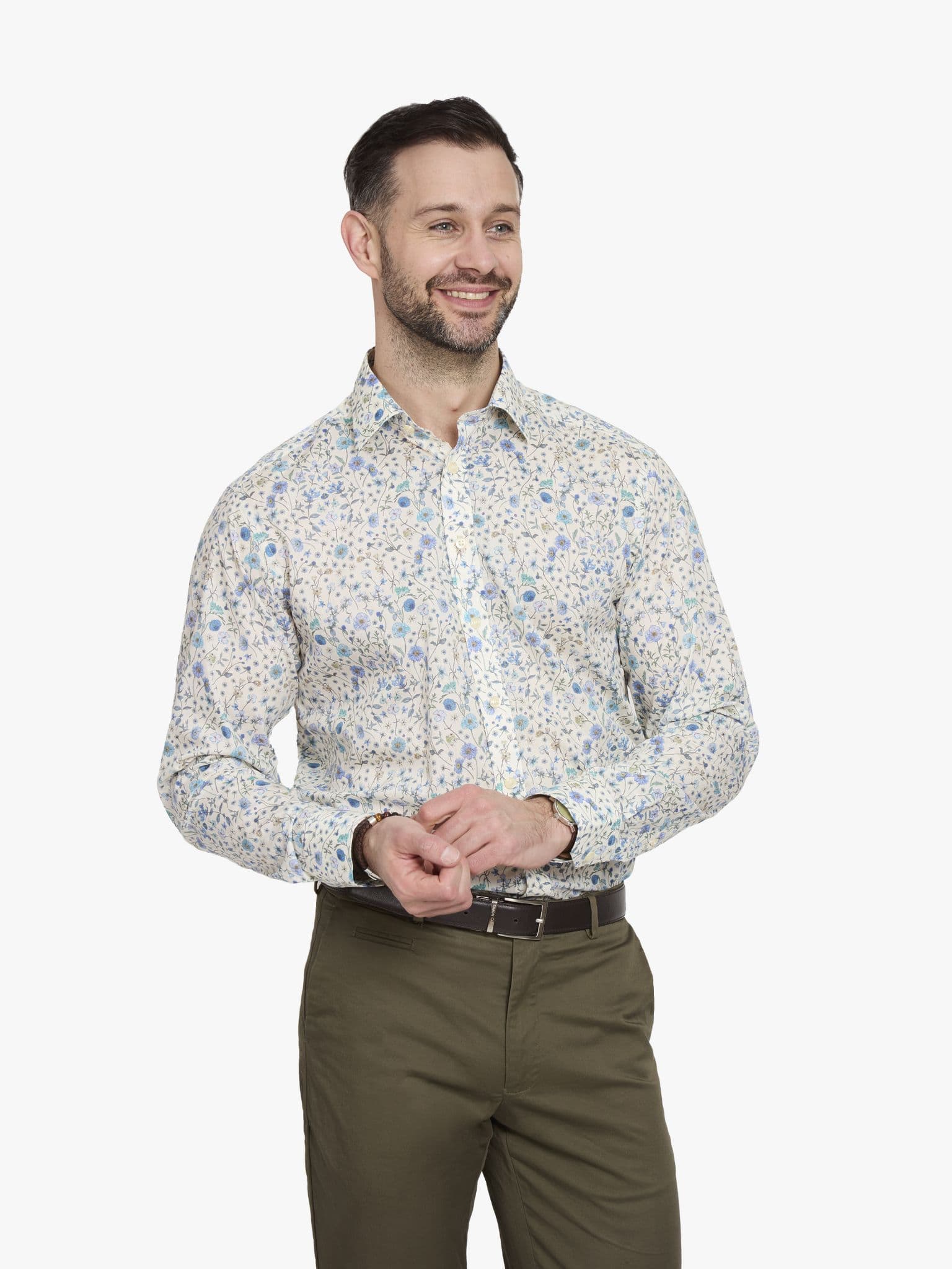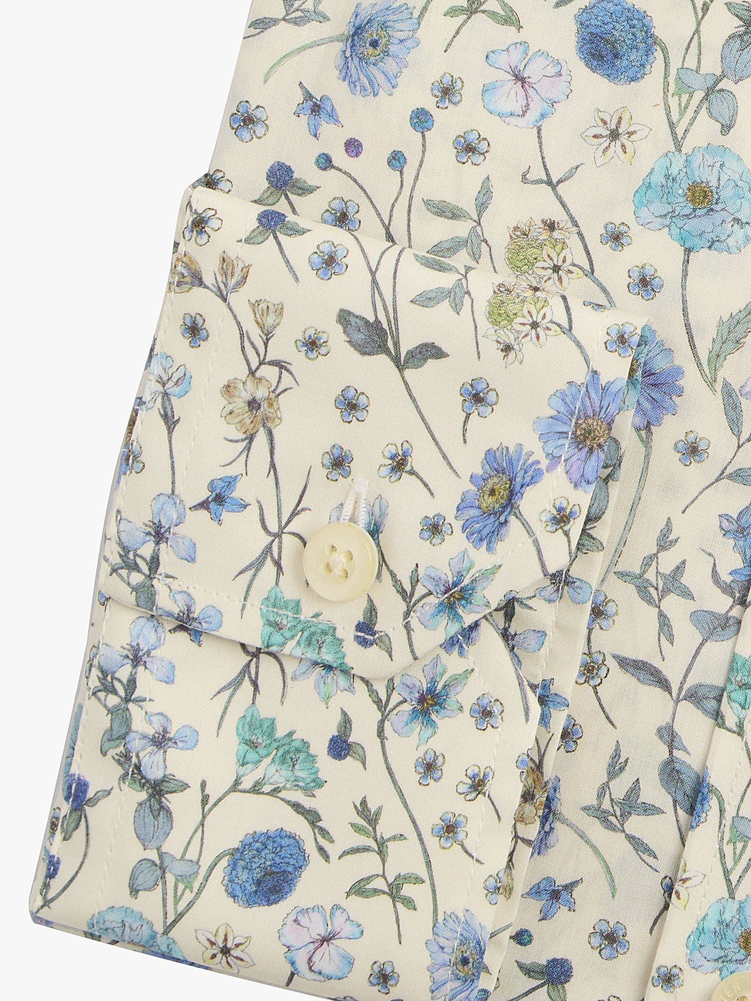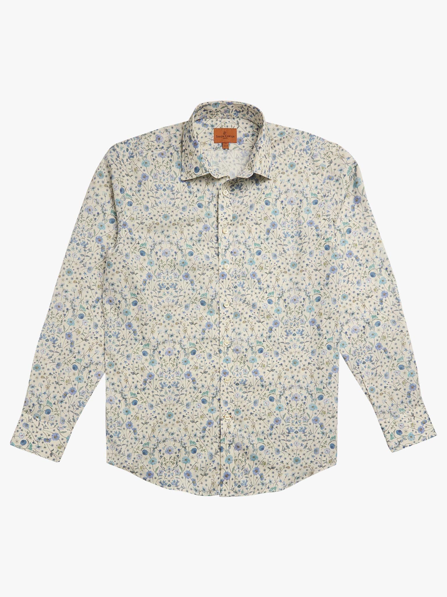 In an age of AI, it’s reassuring to know that creative people still care. Made with Liberty Fabric, with exquisite design has been hand drawn using traditional Japanese Gansai watercolours. The whole effect is one of lightness and delicacy. It’s a very restrained palette, too, using just shades of blue and green, with a hint of lilac. It’s destined to be a classic in your wardrobe, a true go-to shirt for just about every occasion. Made in Portugal from 100% Tana Lawn® cotton on a gently fitted block with removeable collar stays.