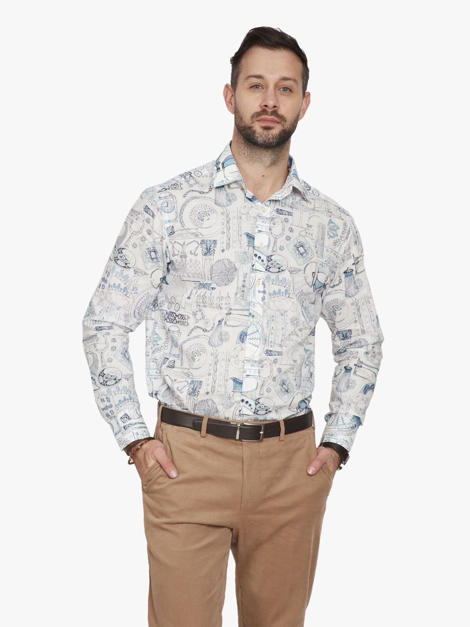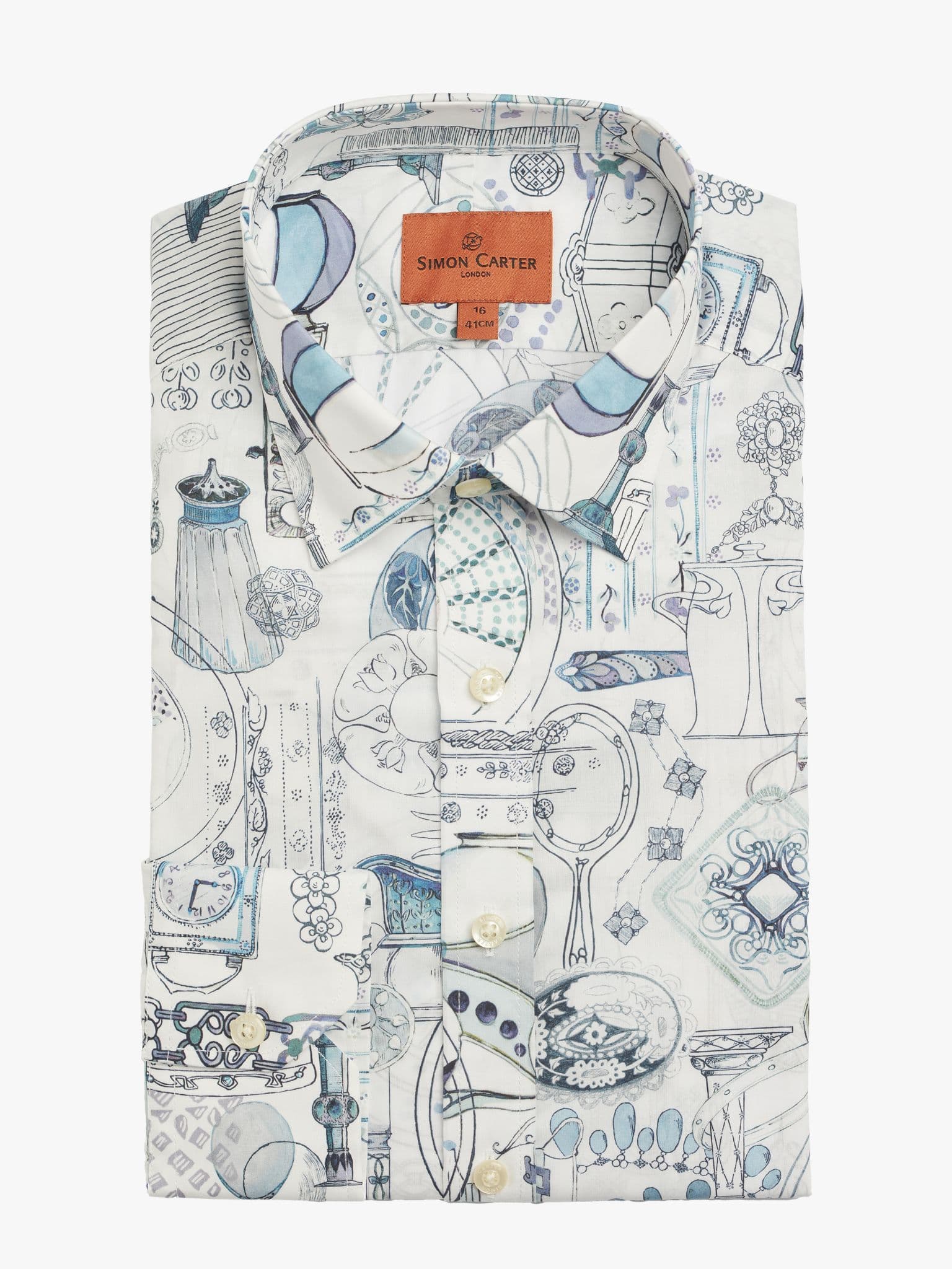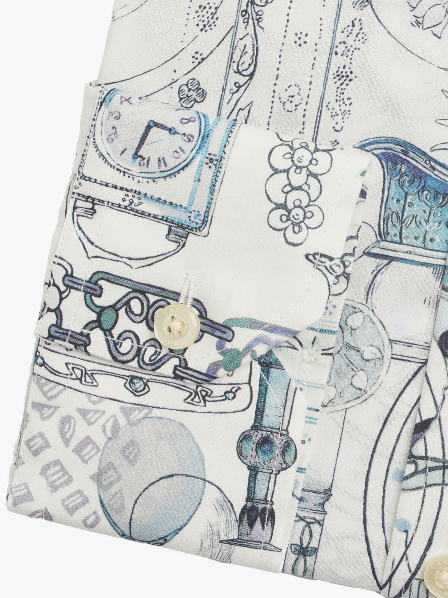 If you're a Liberty fan (who isn't, quite frankly), then this is design heaven. Made with Liberty Fabric it references design icons from the stores early days. There is Tudric pewter ware by Archibald Knox; Clutha glass vases; cutlery and jewellery. Its a clever fabric. The sheer variety of motifs is kept under control by using such a restrained colour palette. Made with Libertys super soft 100% cotton Tana Lawn® in Portugal, with a gently tailored fit.