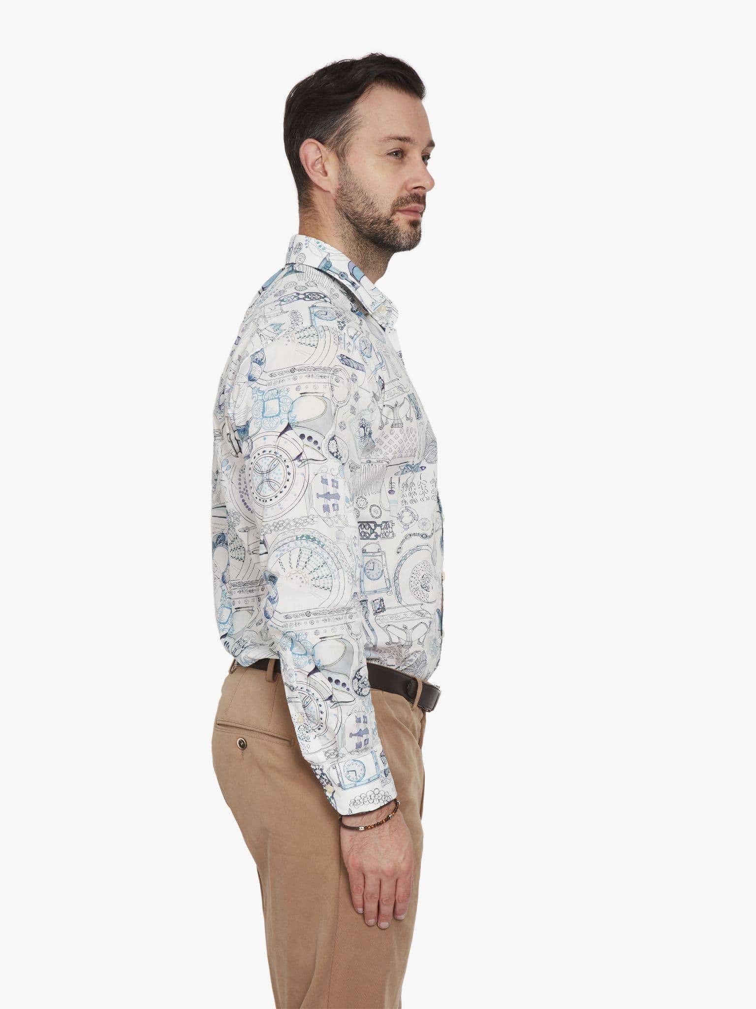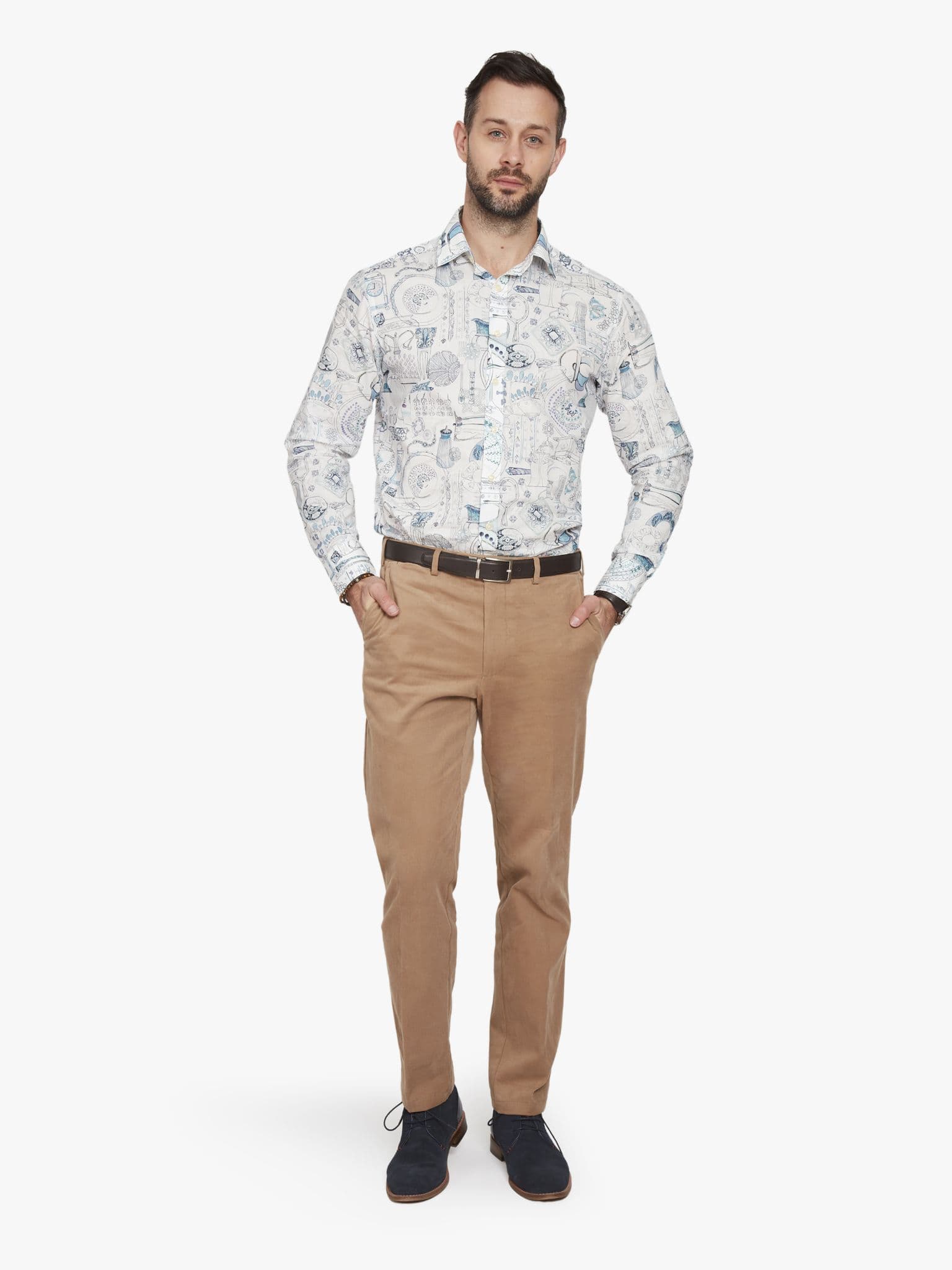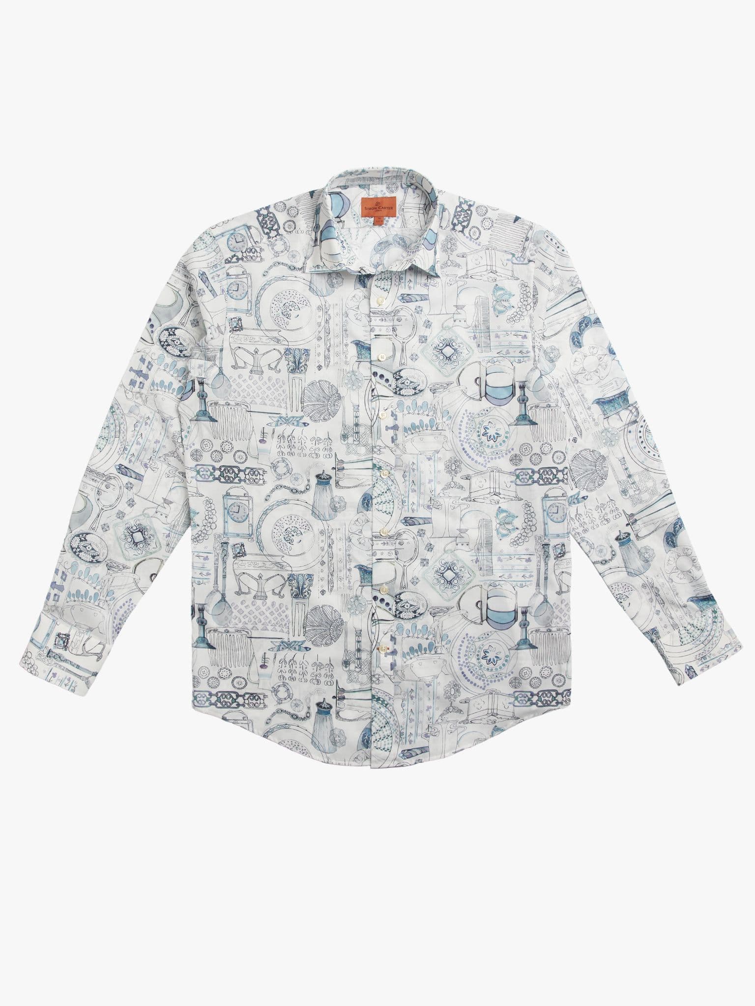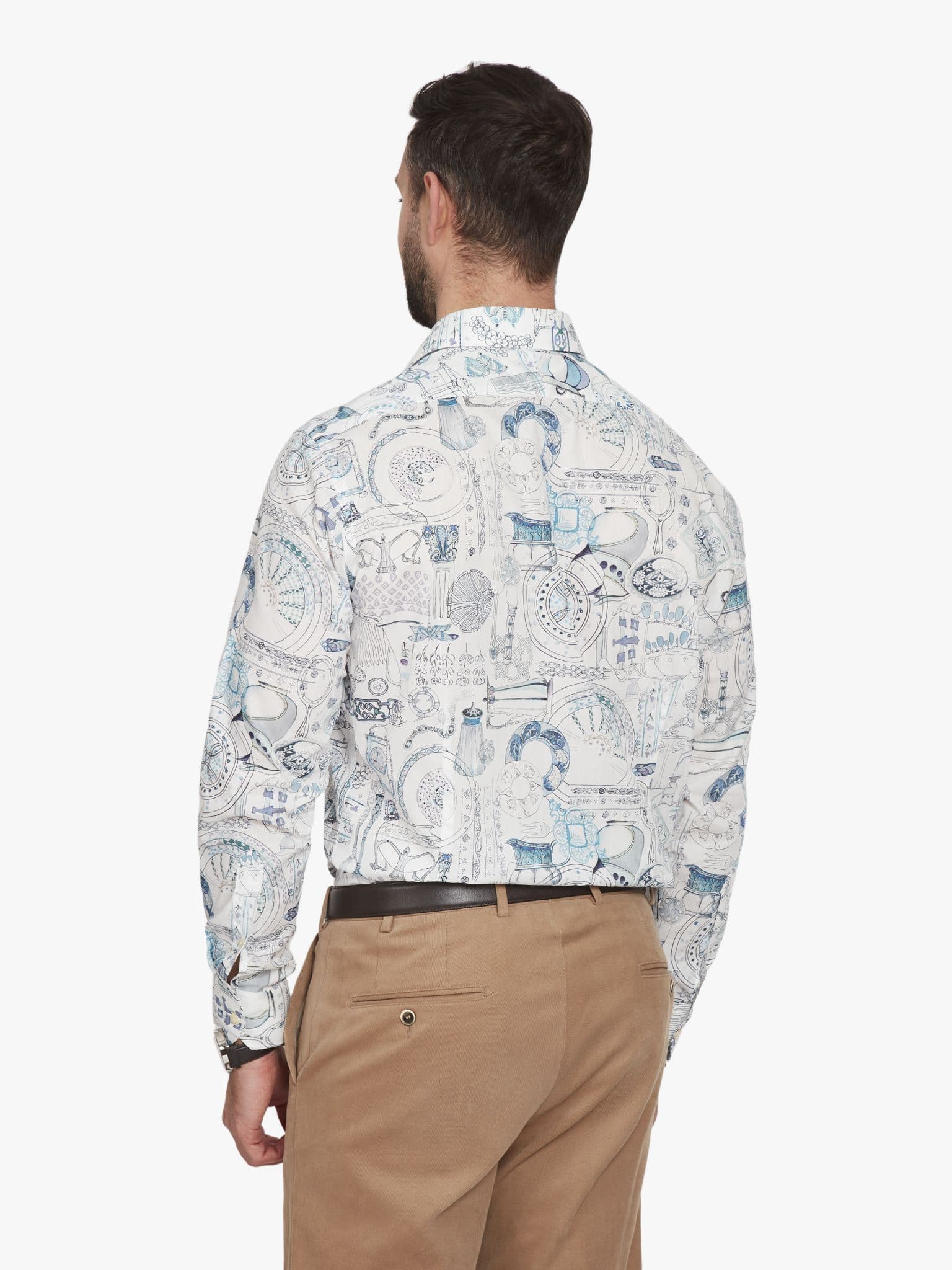 If you're a Liberty fan (who isn't, quite frankly), then this is design heaven. Made with Liberty Fabric it references design icons from the stores early days. There is Tudric pewter ware by Archibald Knox; Clutha glass vases; cutlery and jewellery. Its a clever fabric. The sheer variety of motifs is kept under control by using such a restrained colour palette. Made with Libertys super soft 100% cotton Tana Lawn® in Portugal, with a gently tailored fit.