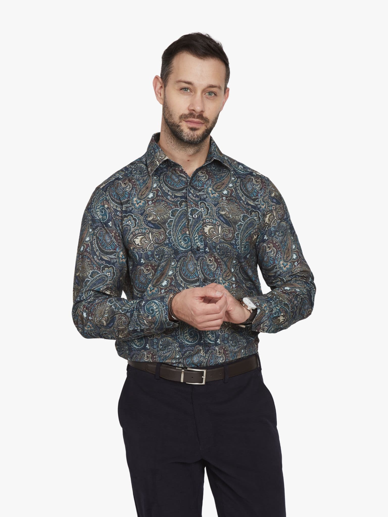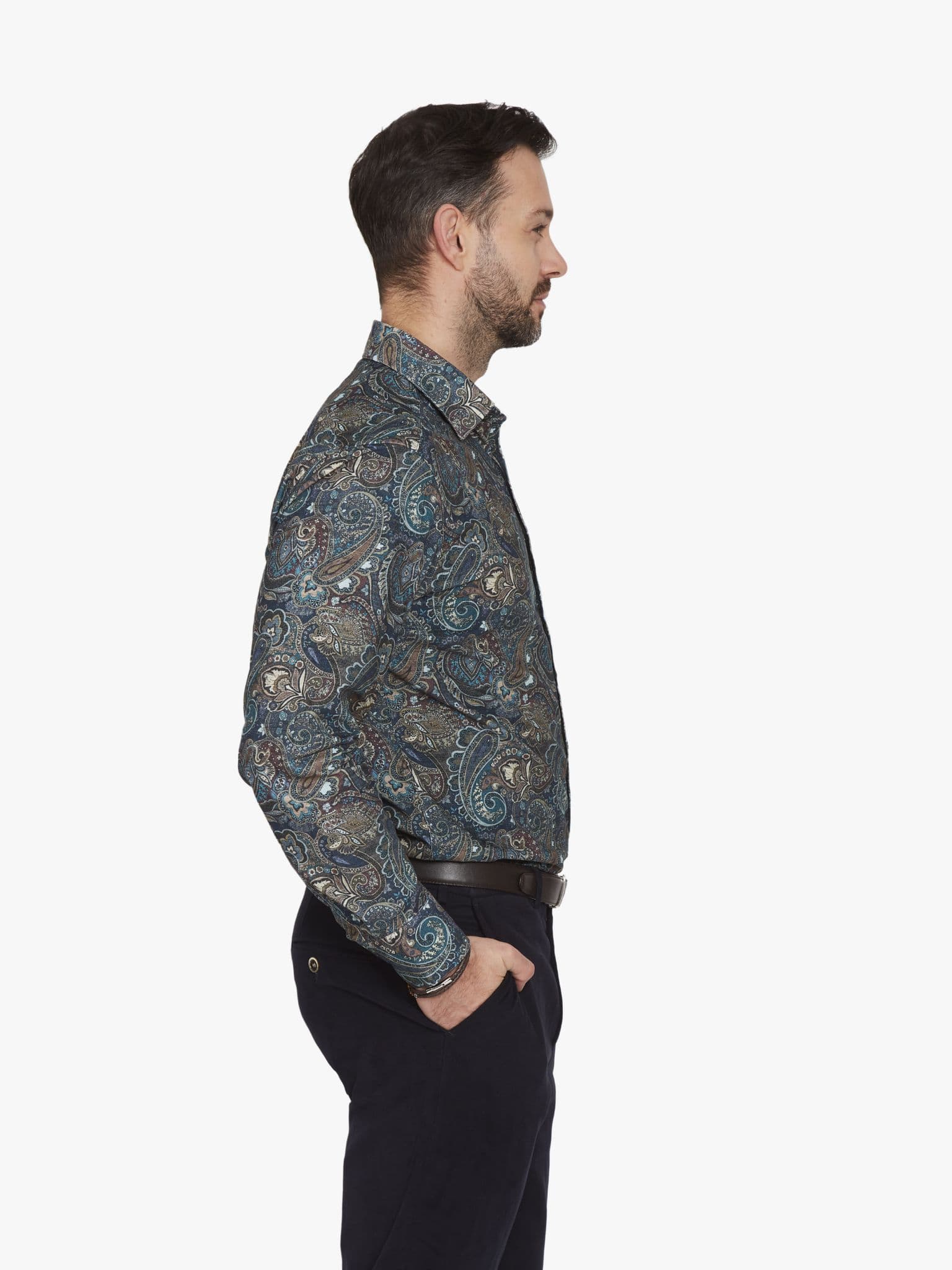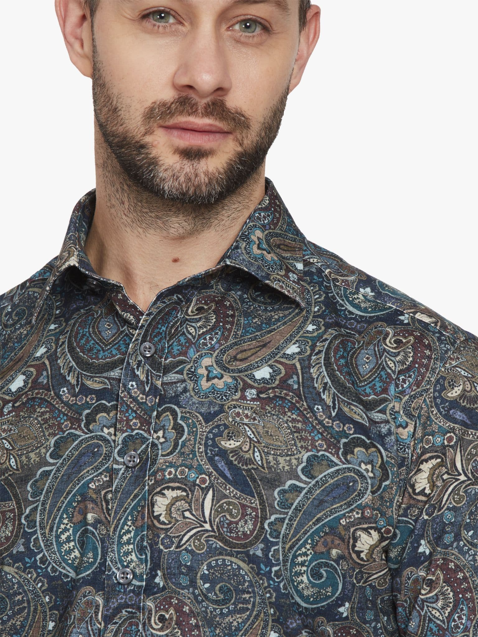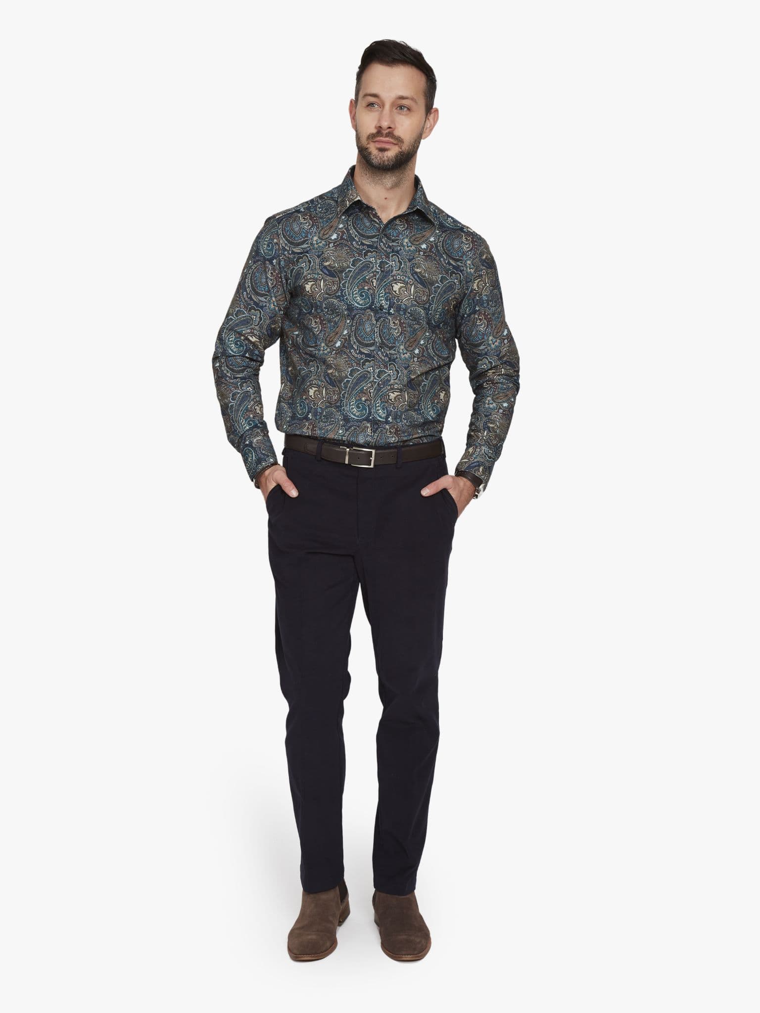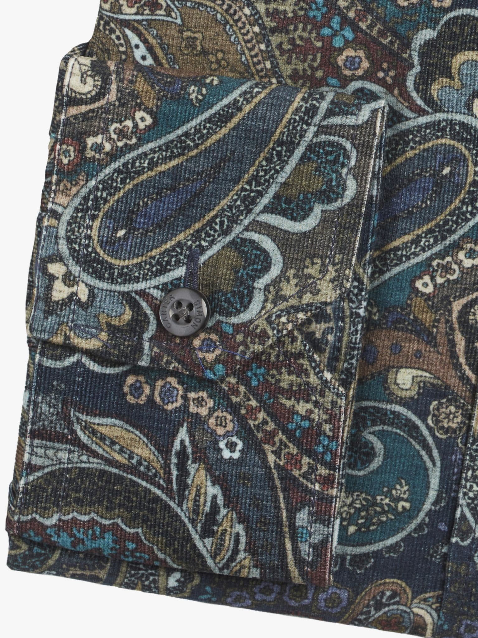 Now for something completely different.Paisley Corduroy. It's a challenge to invent new ways of working with paisley, and we haven't done a cord shirt for a while. There's an attractive washed and vintage feel here, which makes it feel as though its been part of your wardrobe for decades. The range of colours makes it super versatile. For a textured look this season, wear under velvet, or for a walk in the park team with our Alan Paine knitwear and superb tweed overcoat. Made in Portugal from 100% cotton with a gently tailored fit.
